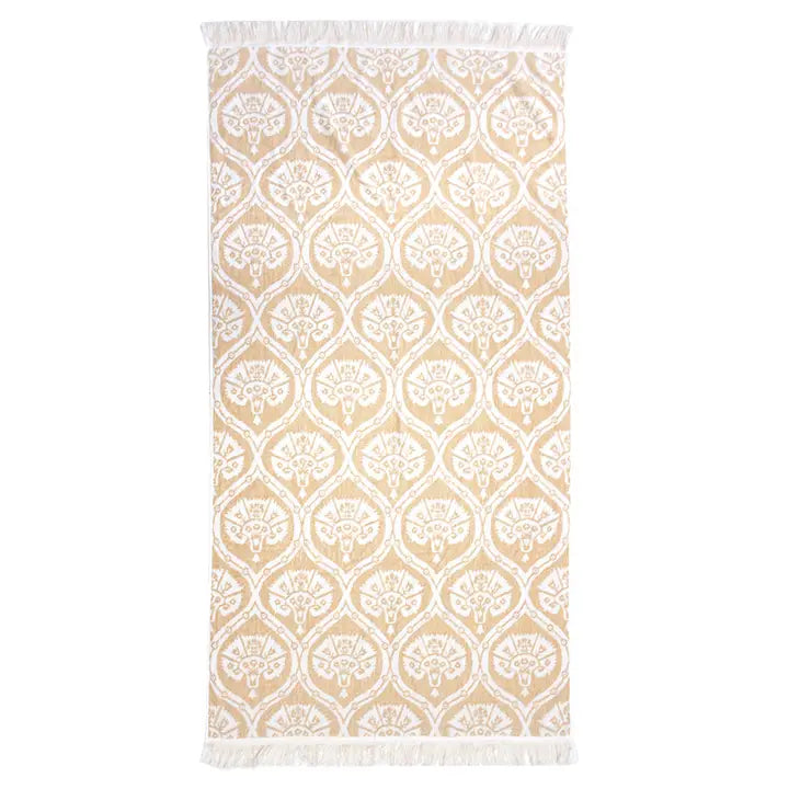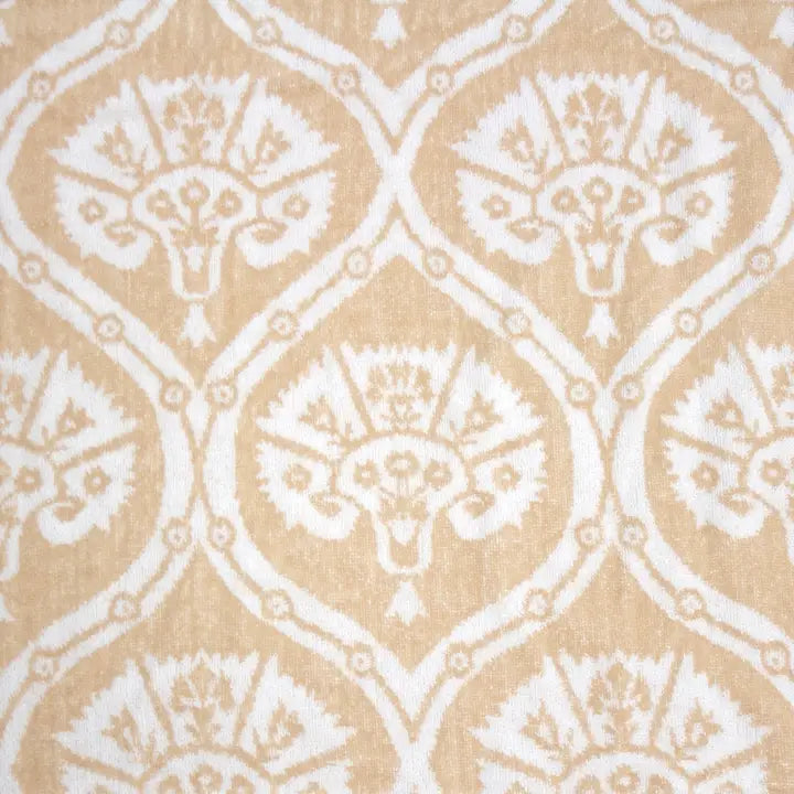 A luxurious beach towel made in Egypt from a fine, high quality durable cotton, that is soft and absorbent, perfect for the beach or pool. The large sized towel features a contemporary design, with a velour finish on one side and natural fringing along the ends.